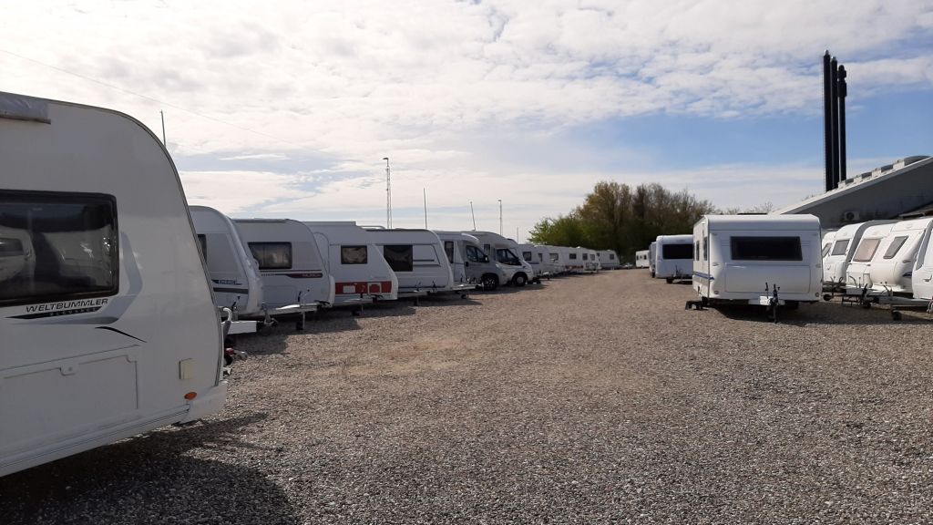 Vi fik set det store udvalg af nye og brugte campingvogne, han har stående, samt alt det tilbehør han har i sin butik.