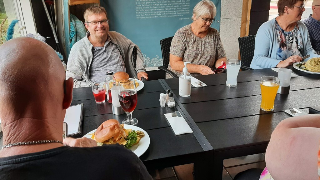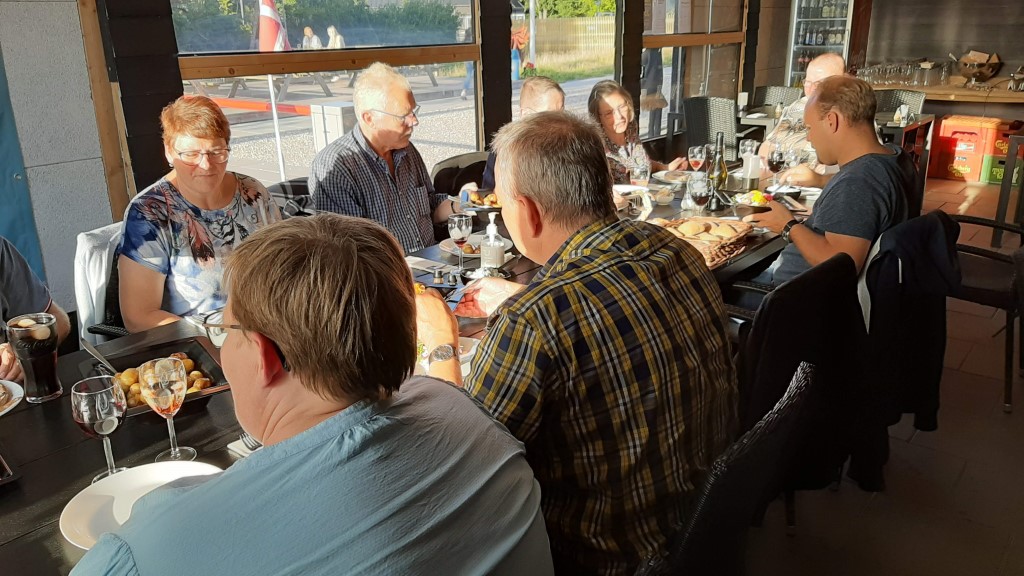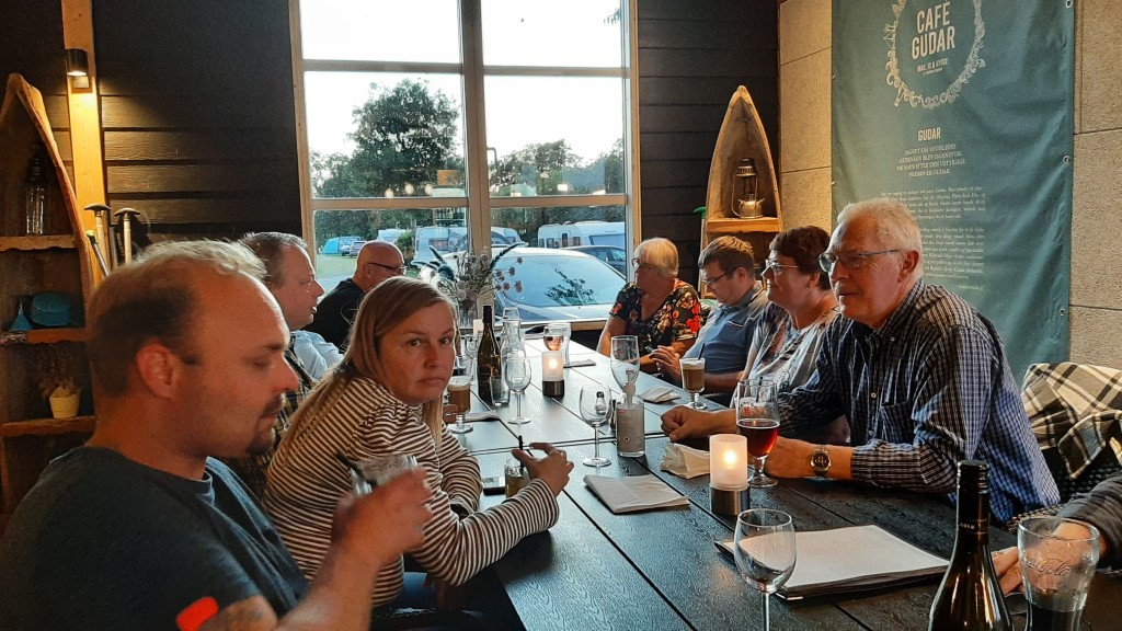 Fredag aften var der fælles middag i Cafe Gudar på campingpladsen, og her sad vi og hyggede hele aftenen.